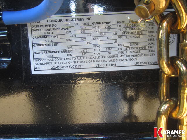 Color: Black Length: 16' Height: 32" Deck Height Width: 82 1/2" Inside Weight: +/- 5,450lbs Serial No: 2DADC4374TV033237 Axles: 3 x 7000 lb Spring Rims: 16" Steel Tires: 235/80R16 GVWR: +/- 23,000 lbs Payload: 17,883 lbs |