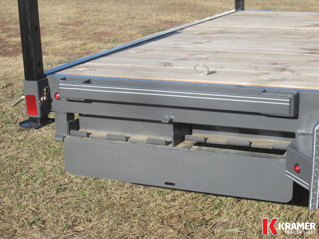 Body: Steel Main Frame: 5" C-Channel Cross Members: 24" Crossmember spacing Floor: Fir Decking Ramp Style: Stored Under Bed Electrical Plug Style: 7 Way RV Style Coupler: 2 5/16" Lighting: LED Lighting |