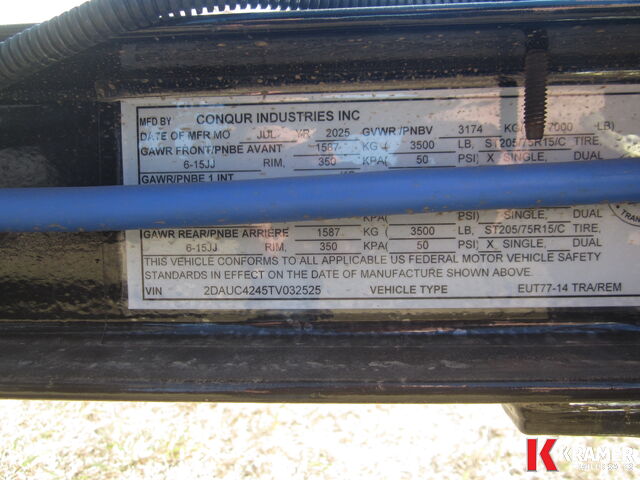 Color: Black Length: 16' Height: 24" Deck Height Width: 83" Between Fenders Weight: +/- 2,150 lbs Serial No: 2DAUC4245TV032525 Tag #: 4057 Axles: 2 x 3500 lb Rims: 15" Tires: 205/75R15 GVWR: +/- 7,000 lbs Payload: 5,628 lbs |