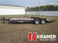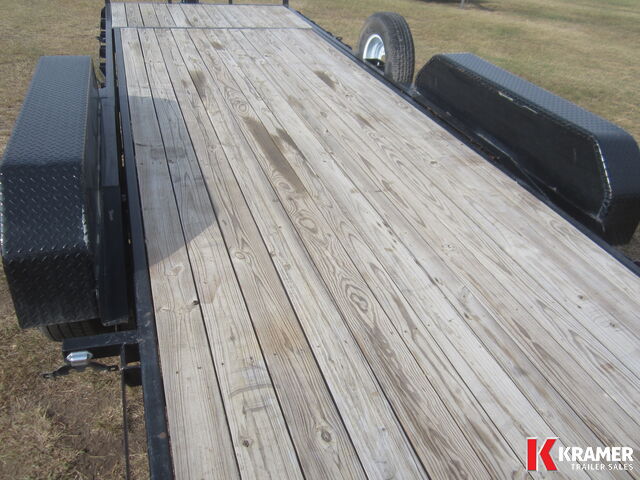 18' deck plus 4' stationary deck. HD reinforced tread plate fenders, bead blasted powder coat paint and (4) 1/2" D-Rings. Comes with spare tire mount and heavy duty diamond plate knife edge tail for easy loading.