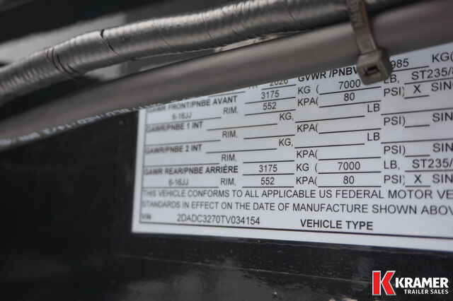 Color: Black Length: 14' Height: 28" Deck Height Width: 82 1/2" Inside Weight: +/- 4,290lbs Serial No: 2DADC3270TV034154 Tag #: 4101 Axles: 2 x 7000 lb Spring Rims: 16" Steel Tires: 235/80R16 GVWR: +/- 14,000 lbs Payload: 11,266 lbs |