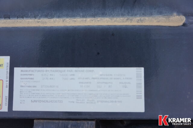 Color: Black Length: 14' Height: 24" sides (29" deck height) Width: 82" inside Weight: +/- 3800 lbs Serial No: 5JW1D1426J4230723 Axles: 2-7000# HD slipper spring Rims: 16" Steel 8 bolt Tires: 235/80R16 GVWR: +/- 14,000lbs Payload: 10,200 lbs Rear Door(s): Barn doors with spreader gate |
