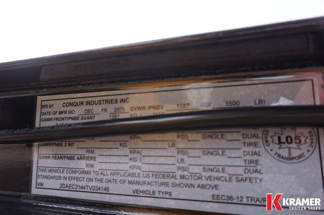Color: Black Length: 12' Height: 21" Deck Height Width: 72" Inside Weight: +/- 1,250 lbs Serial No: 2DAEC2144TV034146 Tag #: 4108 Axles: 3500 lb Spring Rims: 15" Steel Tires: 205/75R15 GVWR: +/- 2,990 lbs Payload: 2,475 lbs |
