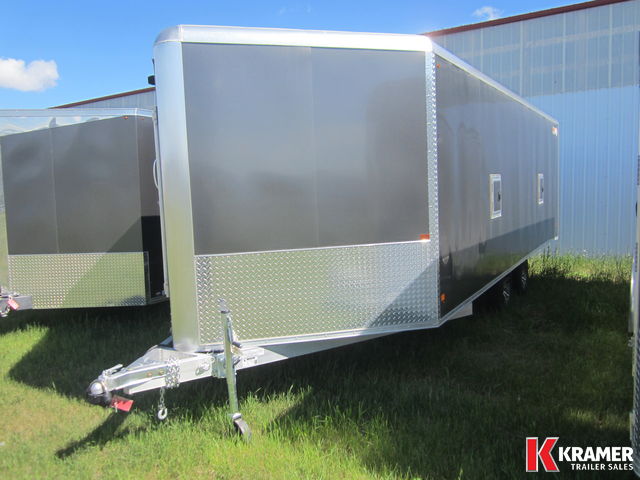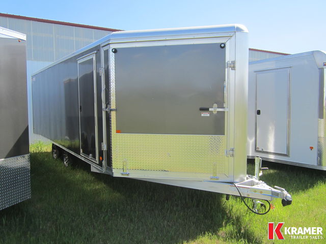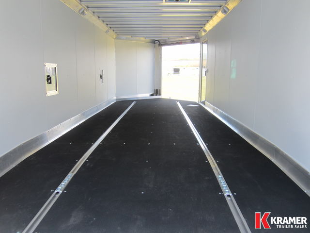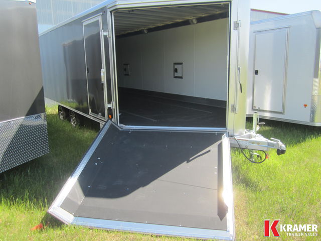 Radius roof construction, Torsion axles, wraparound front ramp w/ spring assist, full-length slide track tie down with D-rings, Quad-Ply decking upgrade, Beavertail, TWO 14"x14" fuel doors, roof vent, aluminum wheel upgrade.