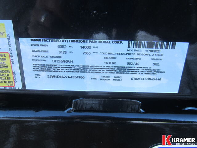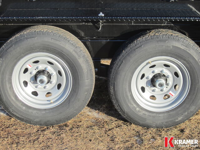Color: Black Length: 16' Height: 29" Deck Height Width: 82" Weight: +/- 4,100 lbs Serial No: 5JW1D1627N4354700 Tag #: 3470 Axles: 2x 7000 lb Slipper Spring Rims: 16" Steel Tires: 235/80R16 GVWR: +/- 14,000 lbs Payload: 9,900 lbs Rear Door(s): Combo Barn Door Spreader Gate w/ Cambar |