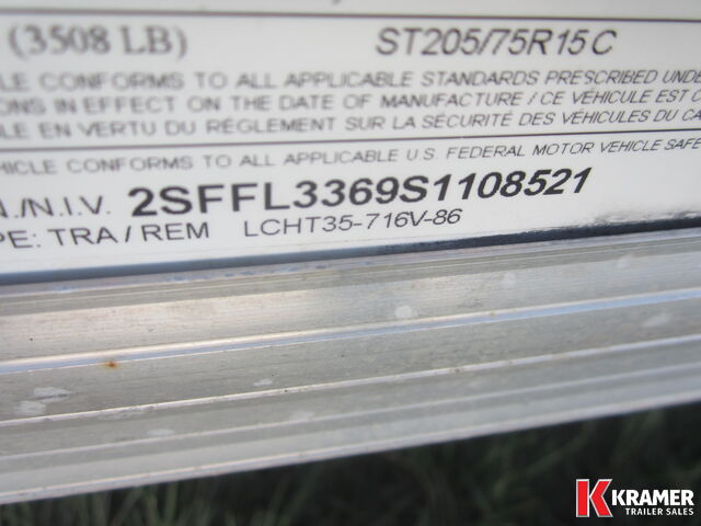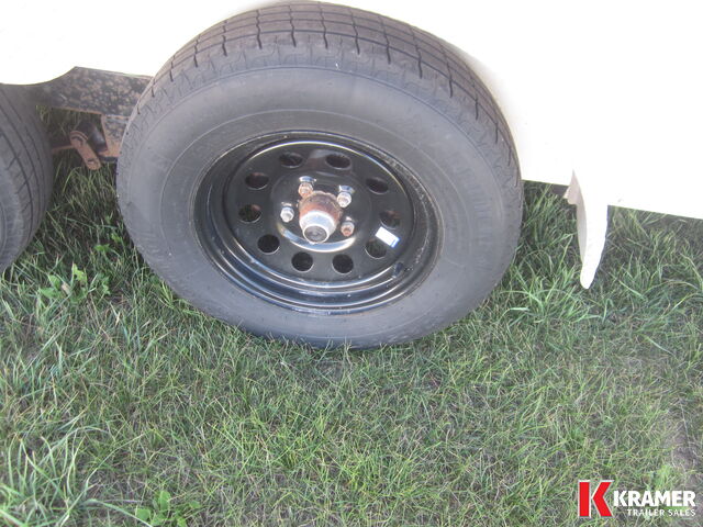 Color: White Length: 16' Height: 87" Inside Height Width: 79" Inside Width Weight: +/- 2,244 lbs Serial No: 2SFFL3369S1108521 Axles: 2 x 3500 lb Spring Rims: 15" Steel Tires: 205/75R15 GVWR: +/- 7,716 lbs Payload: 5,472 lbs Rear Door(s): Ramp w/ Cable Assist Rear Door Opening: 74" W x 81" H |