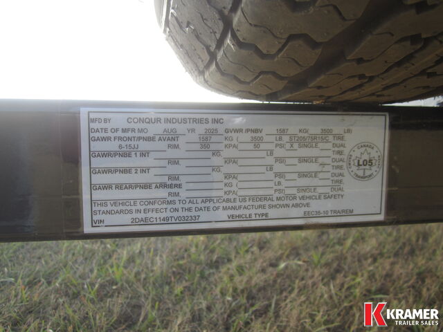 Color: Black Length: 10' Height: 21" Deck Height Width: 62" Inside Serial No: 2DAEC1149TV032337 Tag #: 4048 Axles: 3500 lb Spring Rims: 15" Steel Tires: 205/75R15 GVWR: +/- 2,990 lbs |