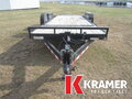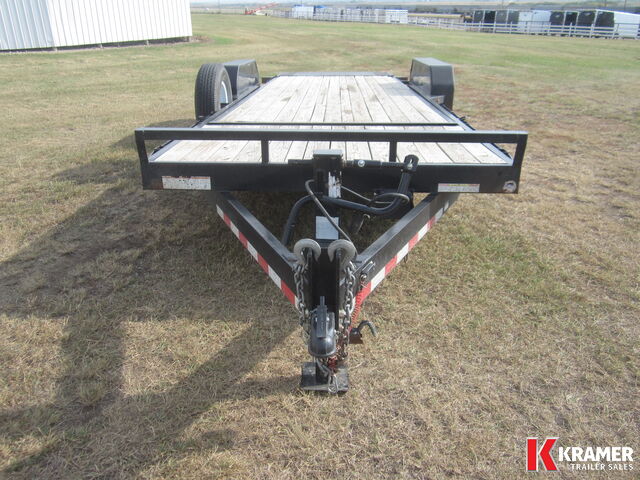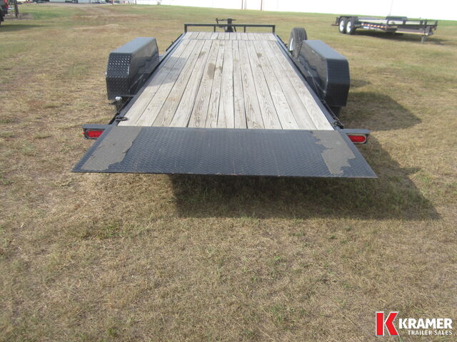 18' deck plus 4' stationary deck. HD reinforced tread plate fenders, bead blasted powder coat paint and (4) 1/2" D-Rings. Comes with spare tire mount and heavy duty diamond plate knife edge tail for easy loading.