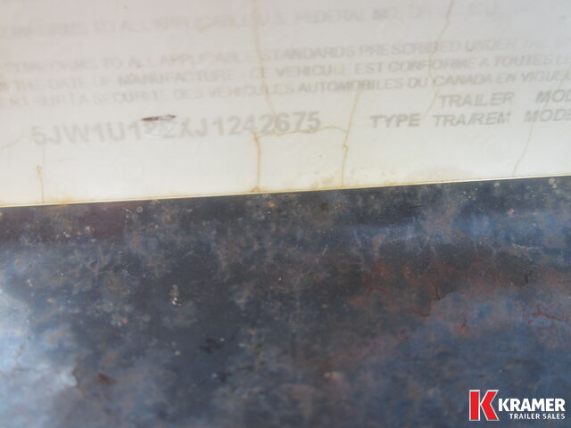Color: Black Length: 15'+3' beavertail Width: 81" between fenders Weight: +/- 2950 lbs Serial No: 5JW1U182XJ1242675 Axles: 2-7000 lb Torsion axles Rims: 16" Steel Tires: 235/80R16 GVWR: +/- 14,000 lbs Payload: 11,050 lbs |