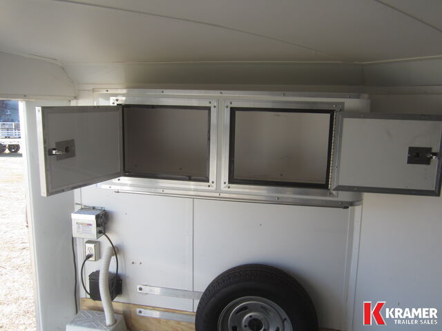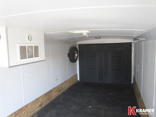 Cargo Trailer Includes (2) 20lb Propane Tanks, Front Ramp, Interior Elevated Spare Tire Mount w/ 2 Spare Tires, 40,000 BTU Furnace and 30 Amp Charger.