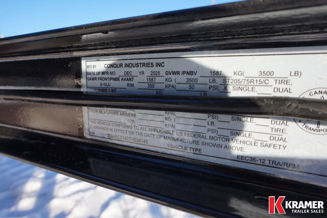 Color: Black Length: 12' Height: 21" Deck Height Width: 72" Inside Weight: +/- 1,250 lbs Serial No: 2DAEC2142TV034145 Tag #: 4093 Axles: 3500 lb Spring Rims: 15" Steel Tires: 205/75R15 GVWR: +/- 2,990 lbs Payload: 2,475 lbs |