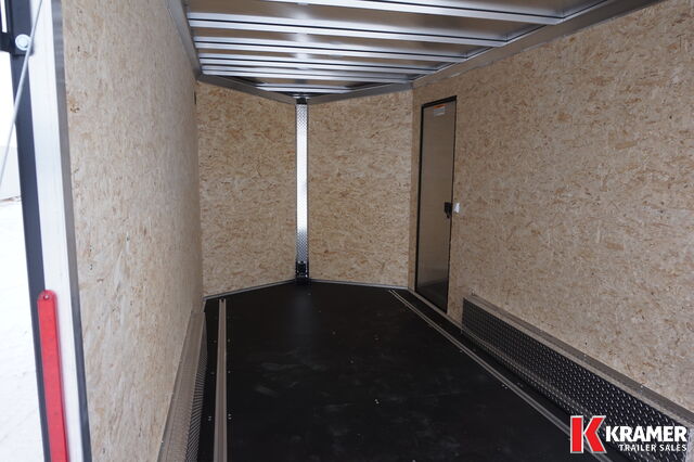 Side Door(s): 32" x 78" Curb Side Front Jack(s): 2,000 lb Center Jack Body: .030" Bonded Side Panels Main Frame: Aluminum Cross Members: 24" O.C. Floor: Quad Ply Flooring Wall Lining: 3/8" Water Resistant Ramp Style: Cable Assist Electrical Plug Style: 7 Prong RV Coupler: 2 5/16" Lighting: LED Lighting |